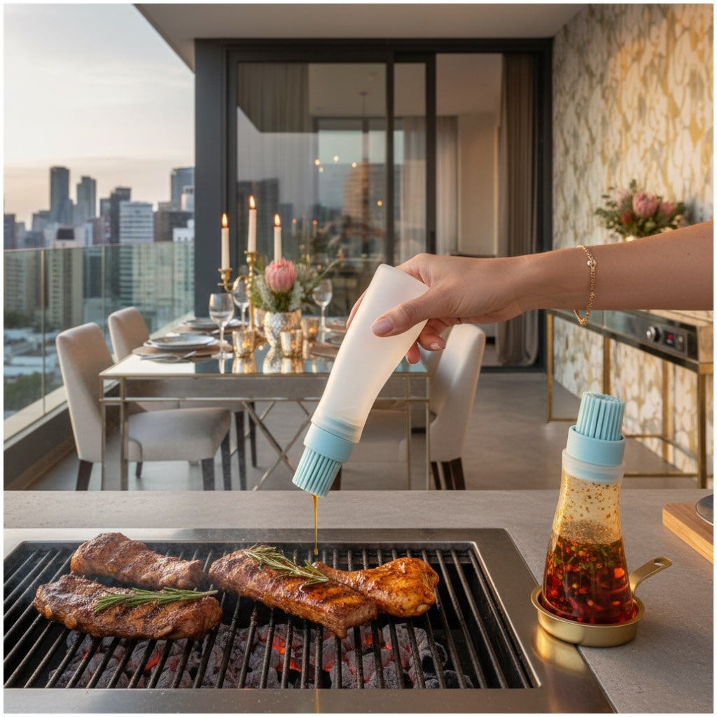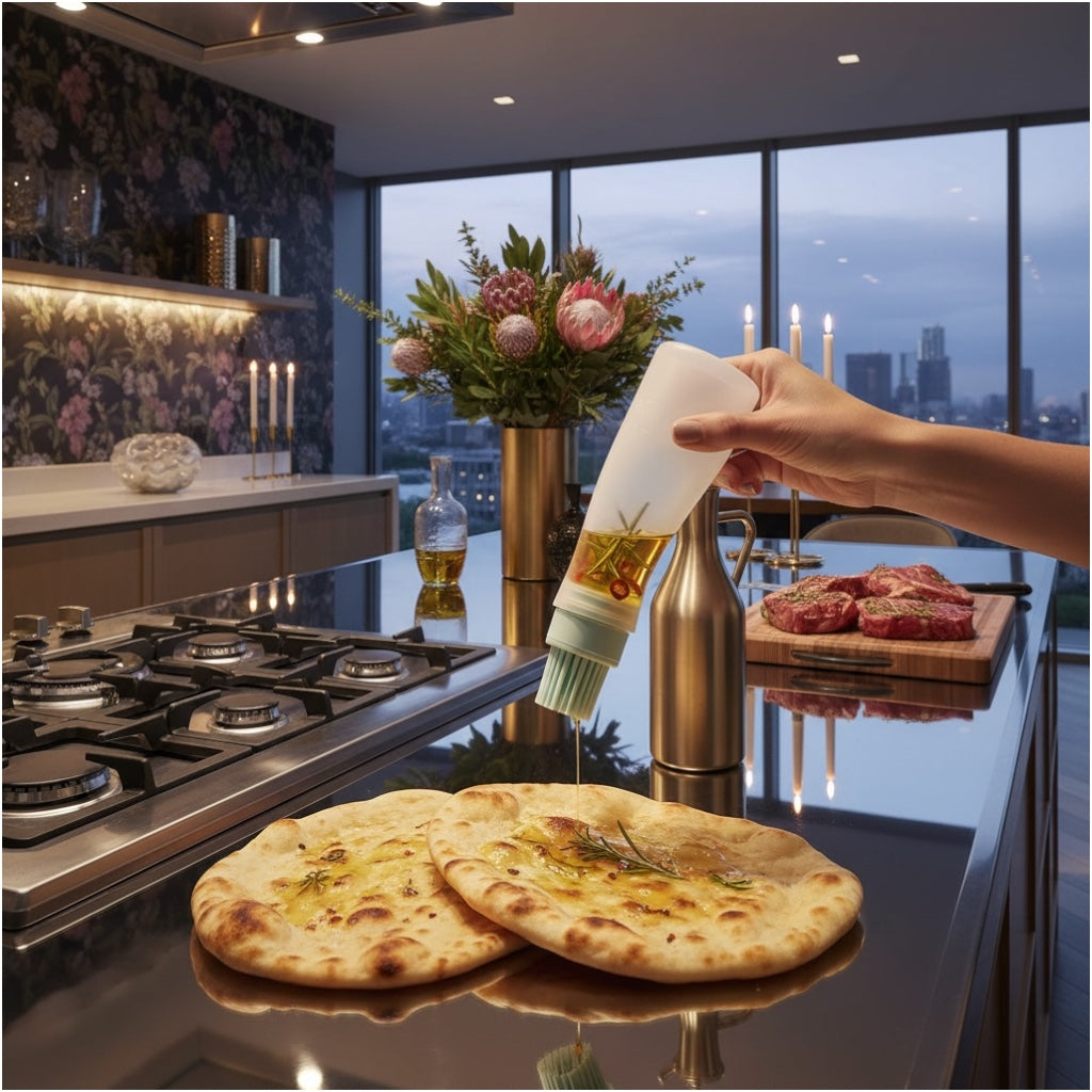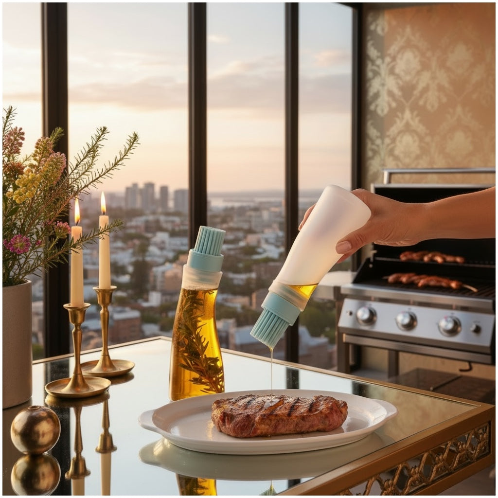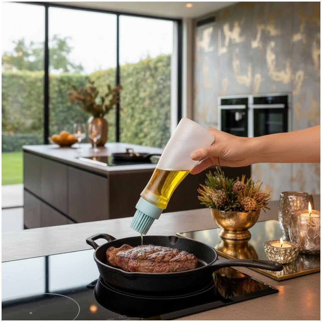 The innovative design allows oil, marinades, or sauces to slowly dispense through the silicone brush as you apply, ensuring even coverage without excess oil or mess. Ideal for grilling steaks, brushing pans, baking pastries, or finishing flatbreads and vegetables.