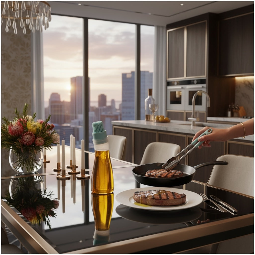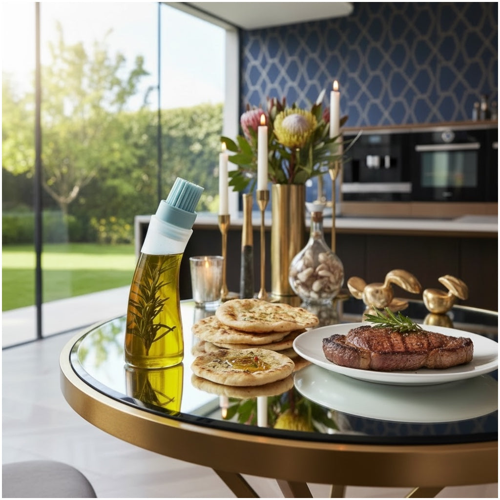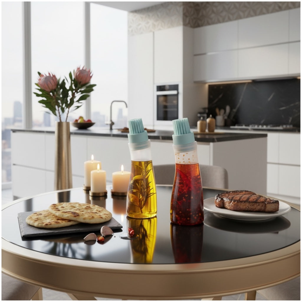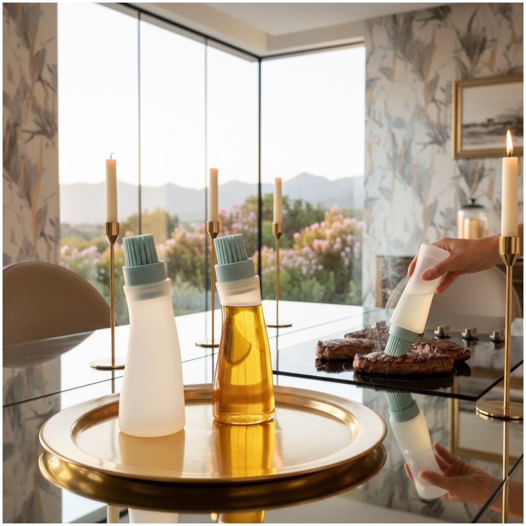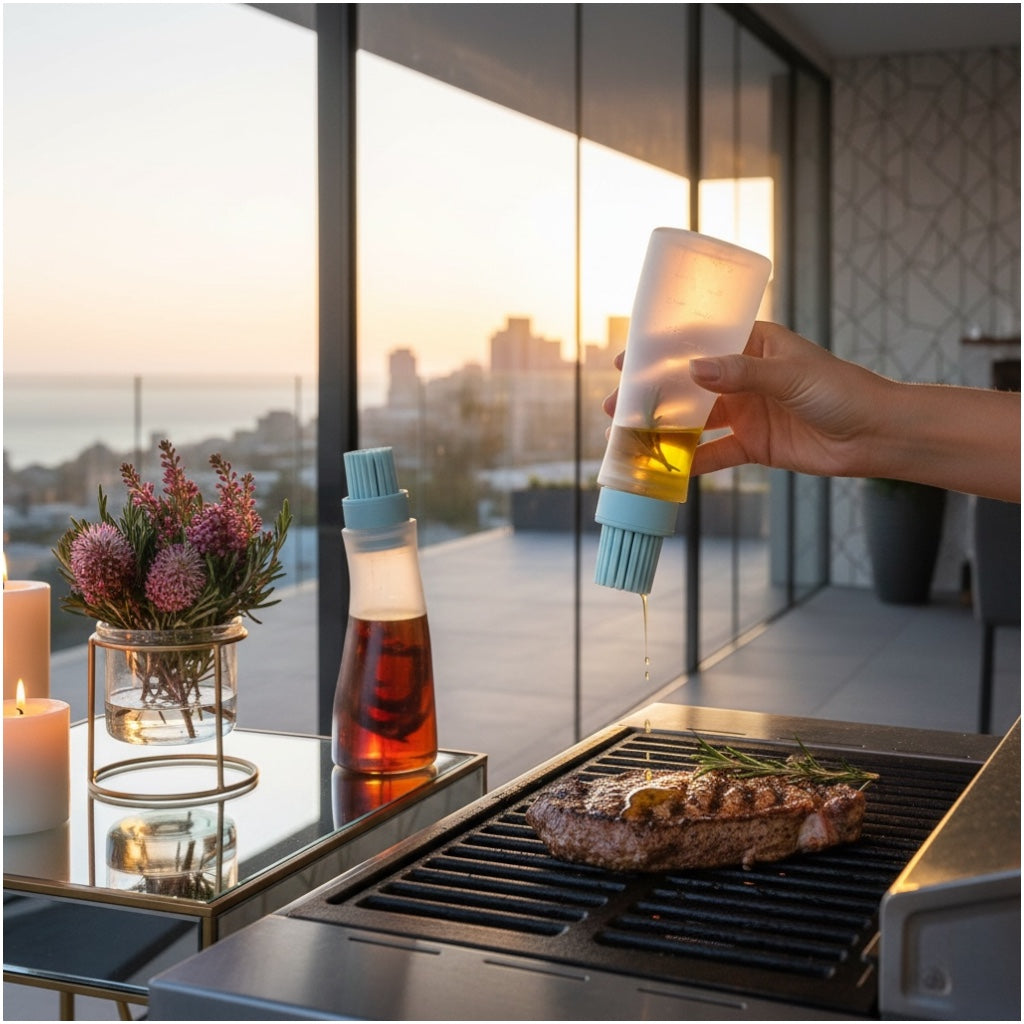 The innovative design allows oil, marinades, or sauces to slowly dispense through the silicone brush as you apply, ensuring even coverage without excess oil or mess. Ideal for grilling steaks, brushing pans, baking pastries, or finishing flatbreads and vegetables.