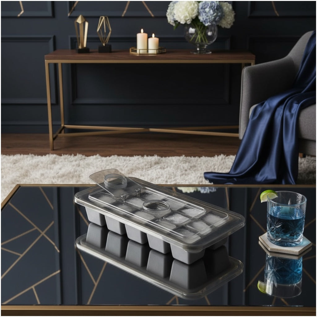 Flexible Silicone Base Ice Tray With Spill Resistant Lid