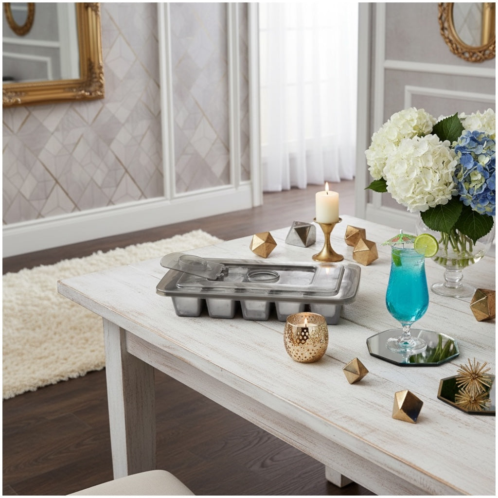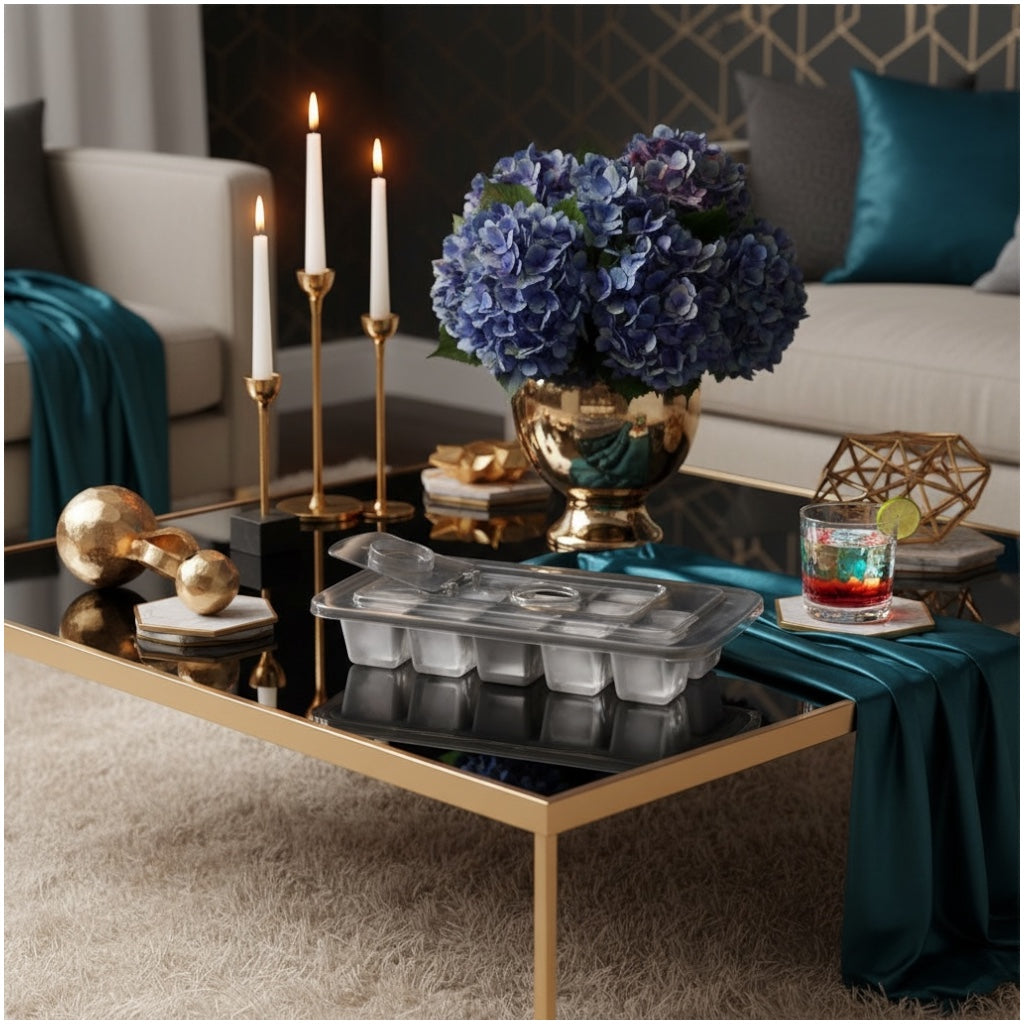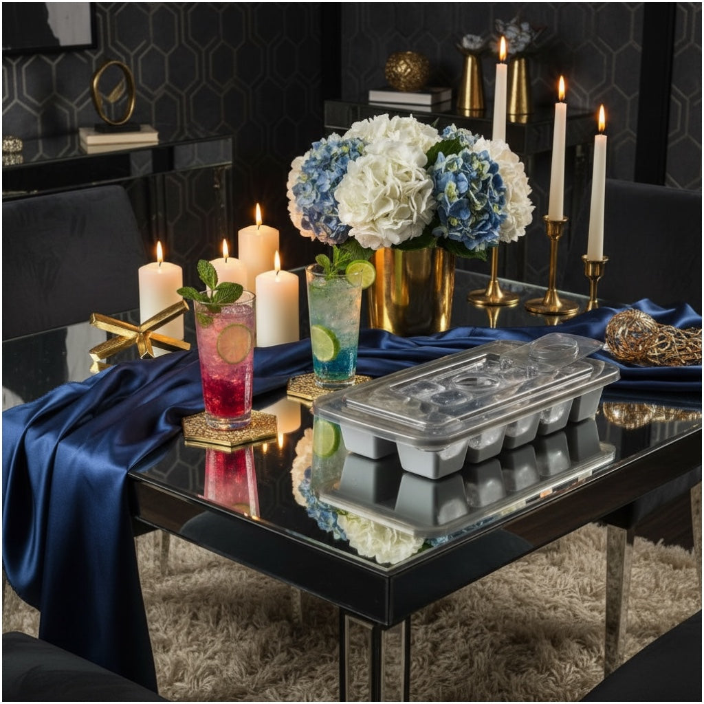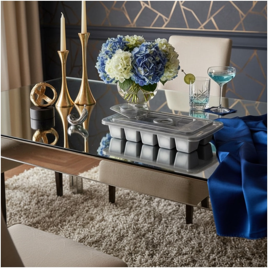 The central fill hole makes pouring water simple and controlled, reducing spills and splashes. Its slim profile is ideal for stacked storage, making it perfect for everyday drinks, cocktails, iced coffee, mocktails, or meal prep freezing.