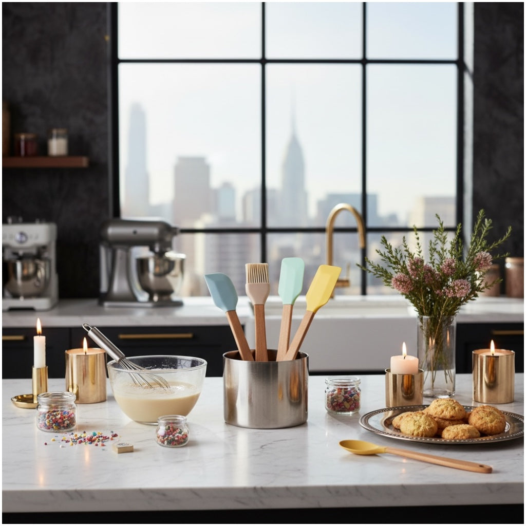 Compact Baking Tools for Precision Mixing, Scraping and Glazing