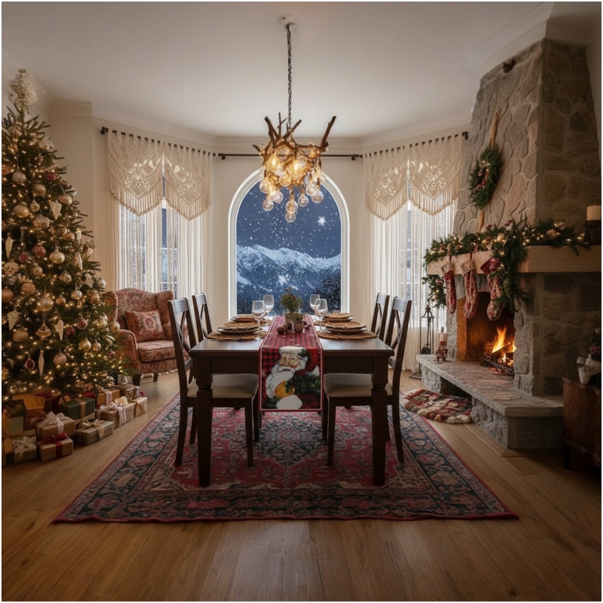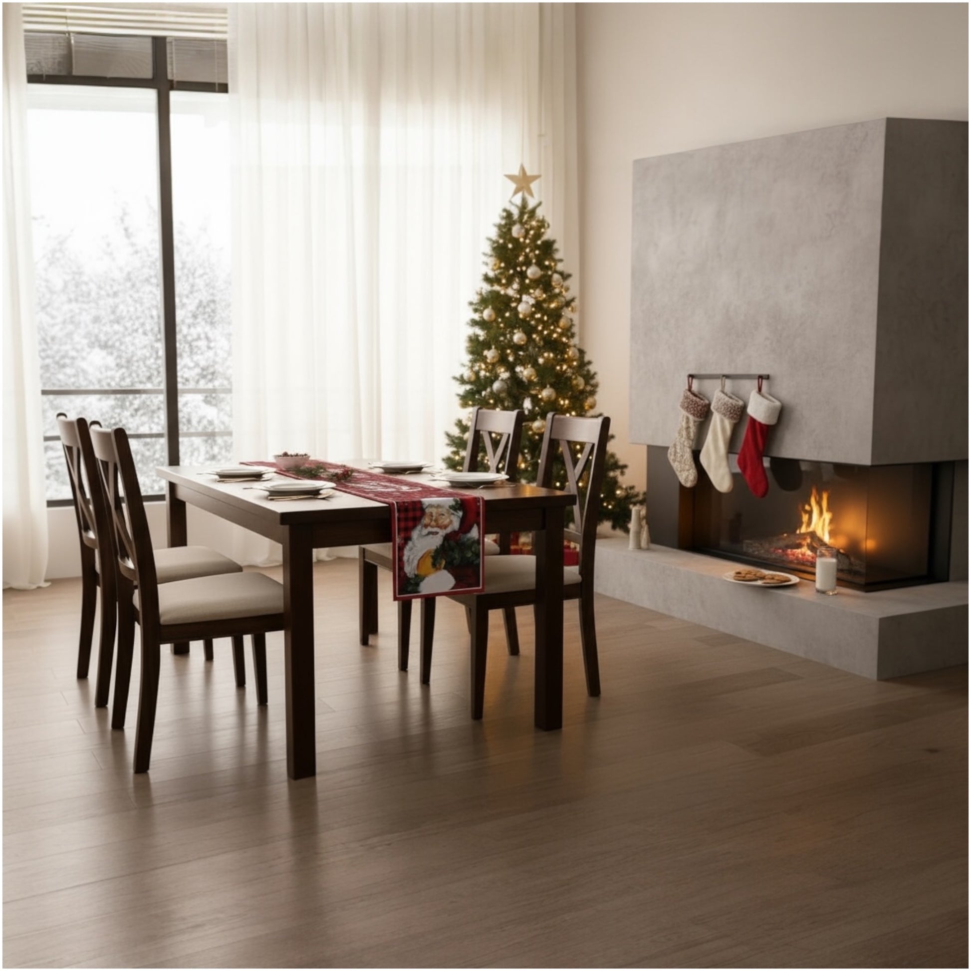 This beautiful Santa Christmas Table Runner captures that exact feeling —
