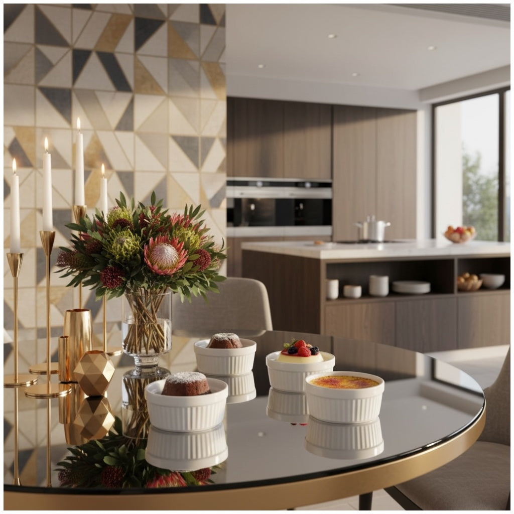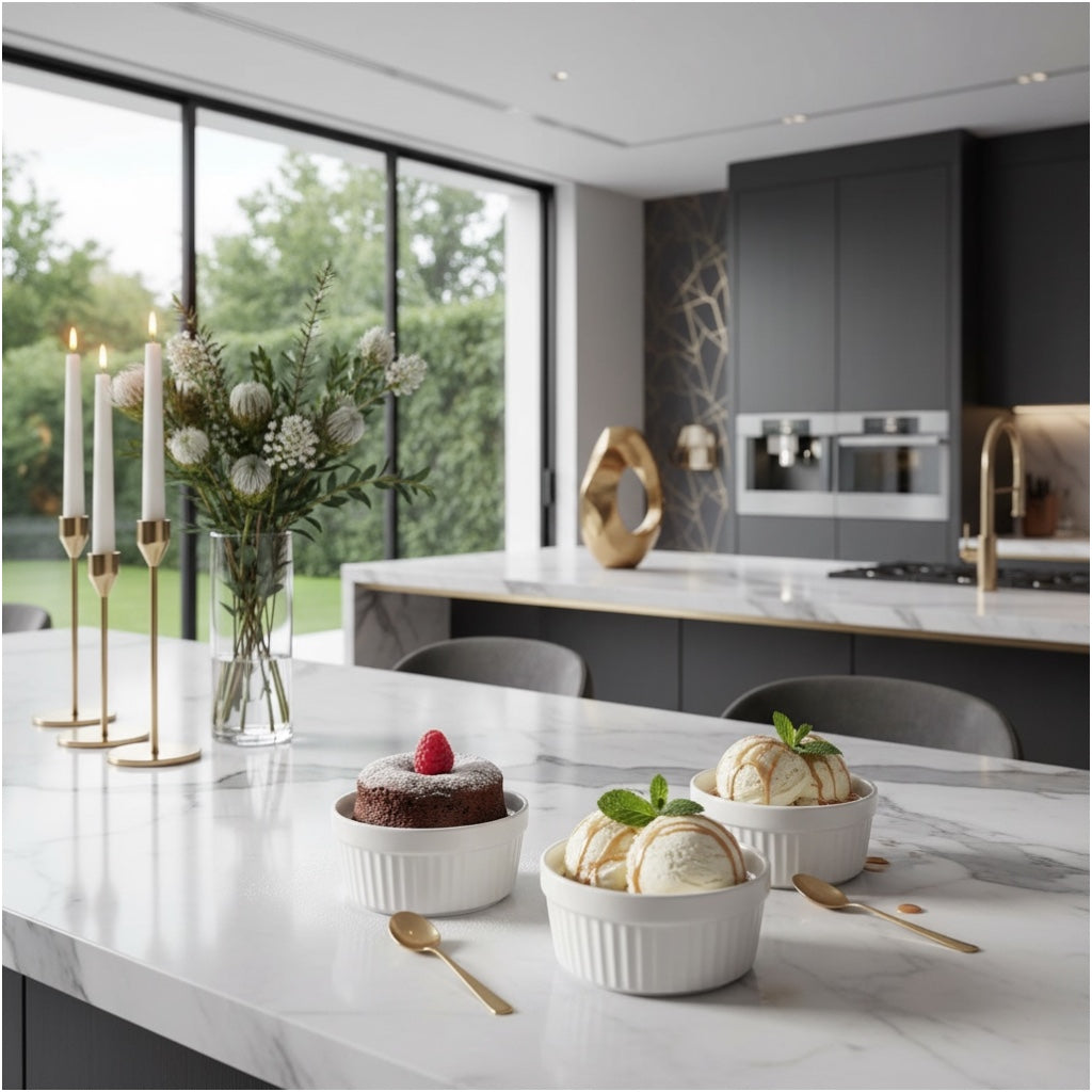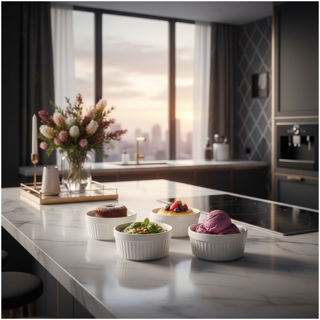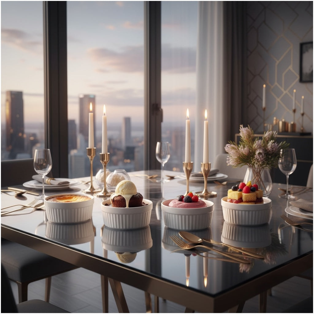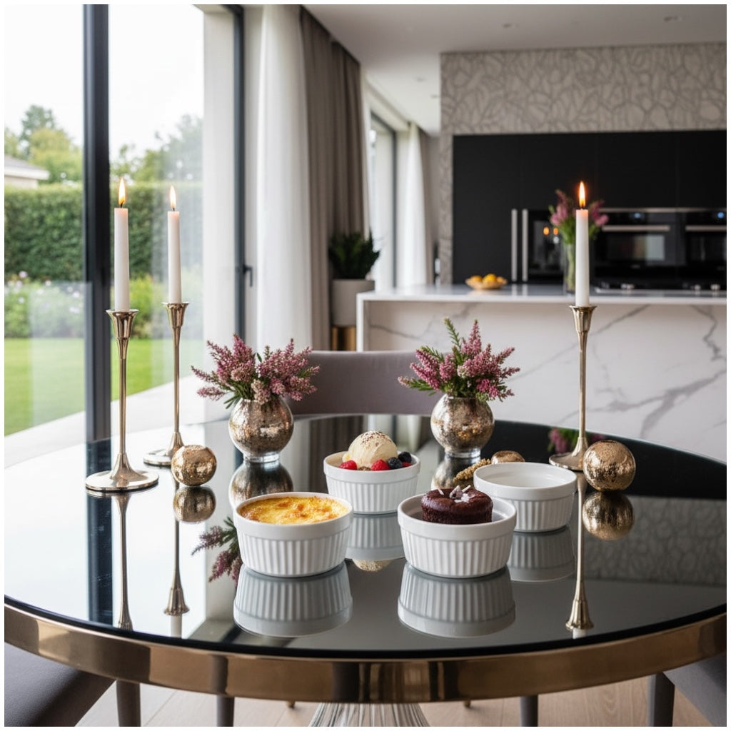Made from durable, food-safe porcelain, each ramekin is suitable for baking, serving, and storing a wide variety of foods. Ideal for custards, crème brûlée, dips, dressings, ice cream, desserts, cream cheese, and individual cake portions. The compact size makes them perfect for single servings and stylish presentation.