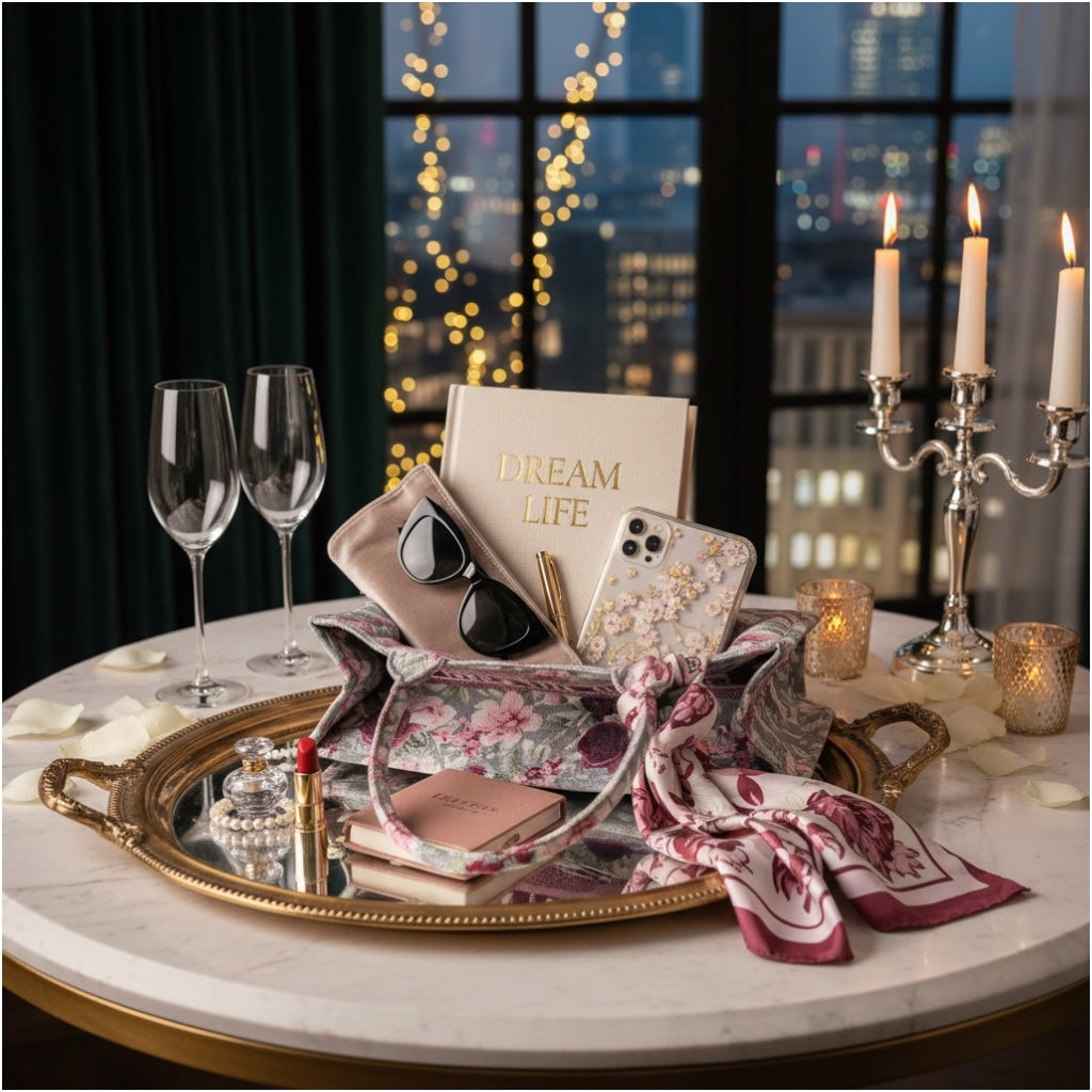 The matching zip pouch adds extra convenience for smaller items, making this set ideal for shopping, travel, brunch outings, or gifting. The floral print and muted tones give it a timeless, versatile look that pairs effortlessly with casual and semi-formal outfits.
