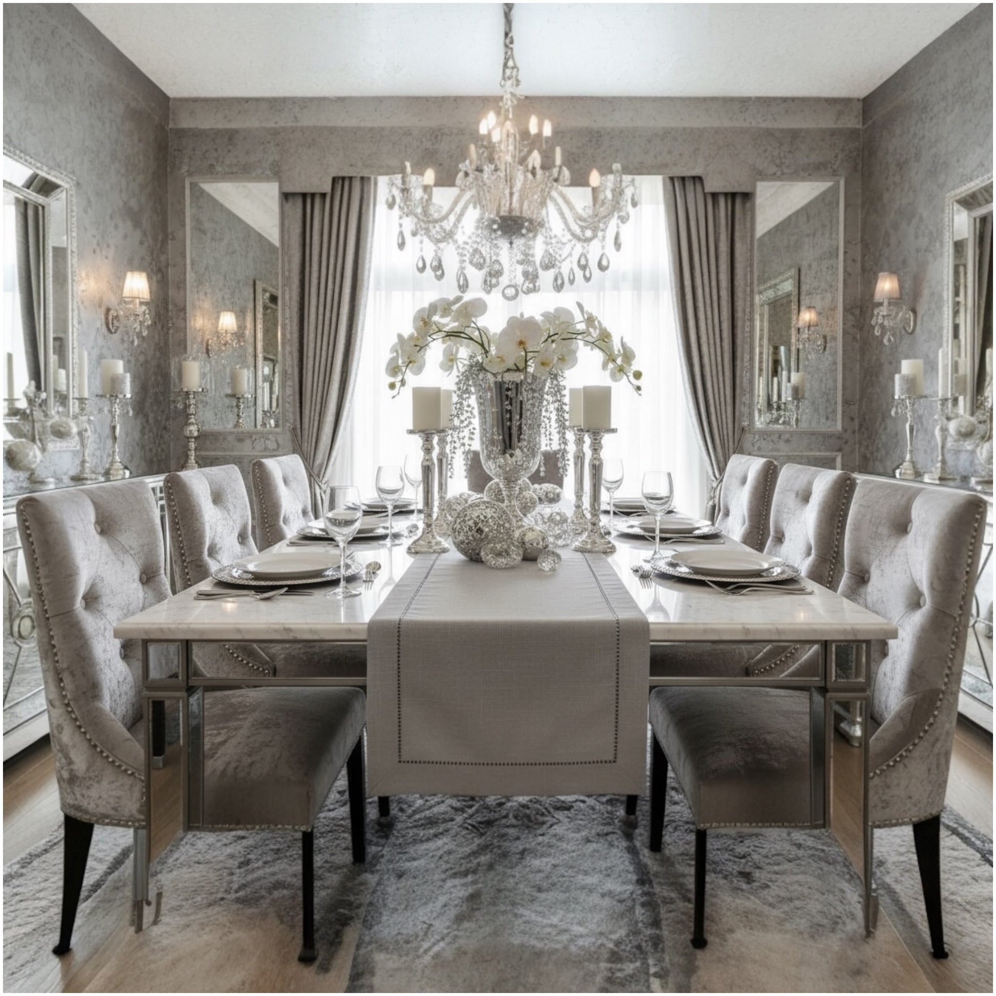 Elegant Neutral Grey: Blends seamlessly with gold, wood, glass, marble and natural tones.