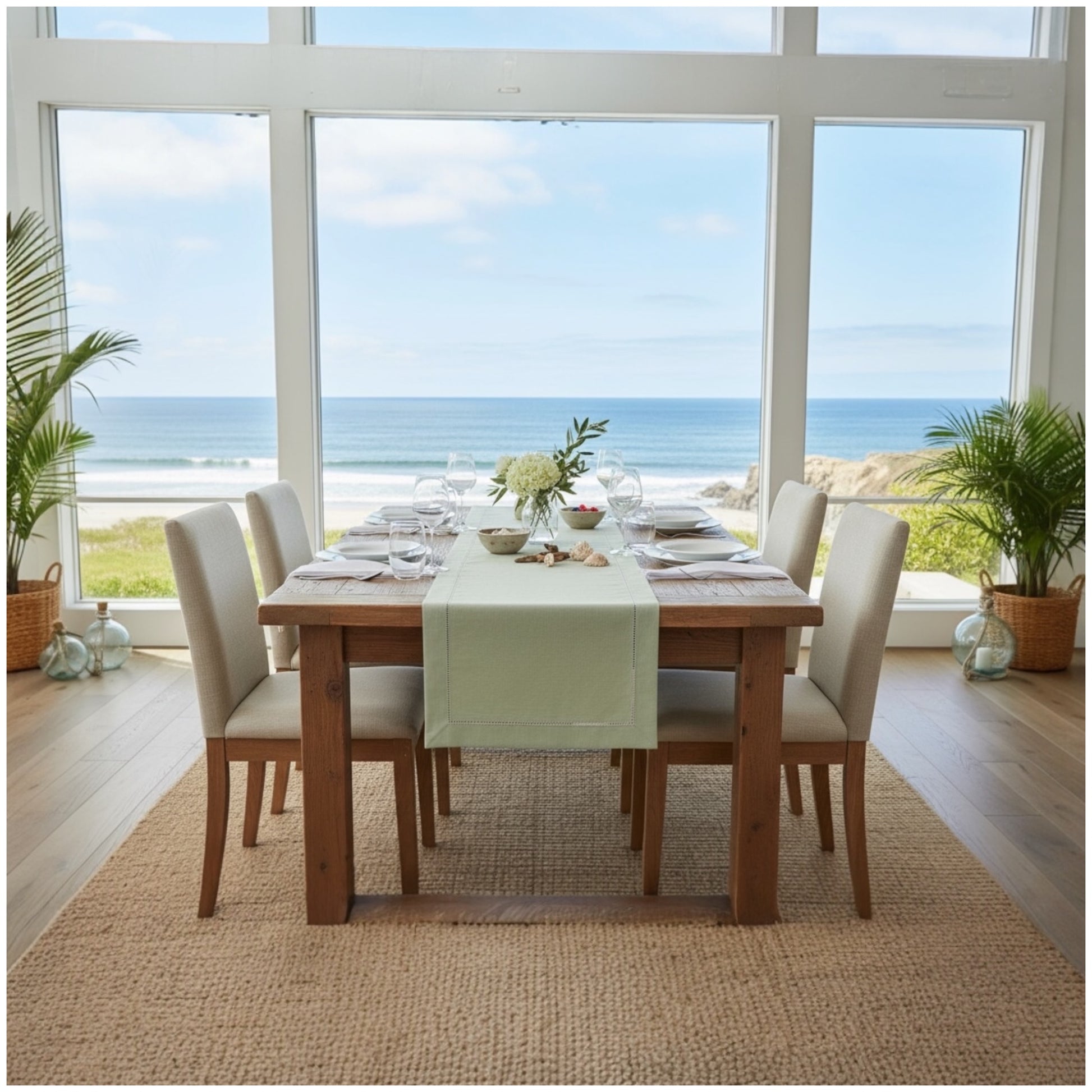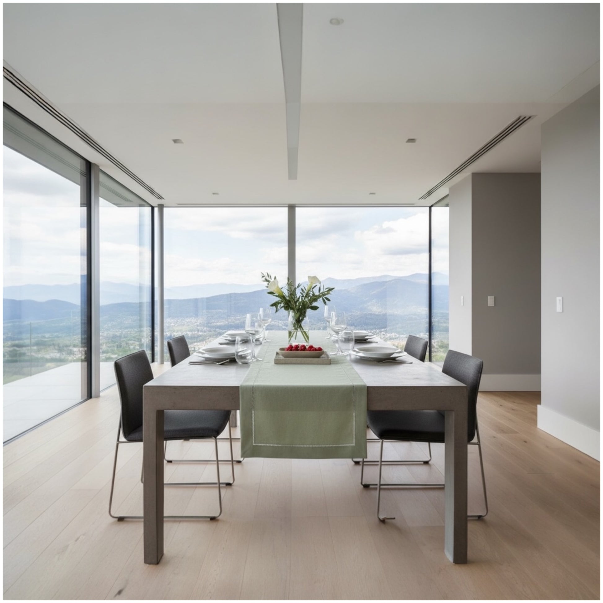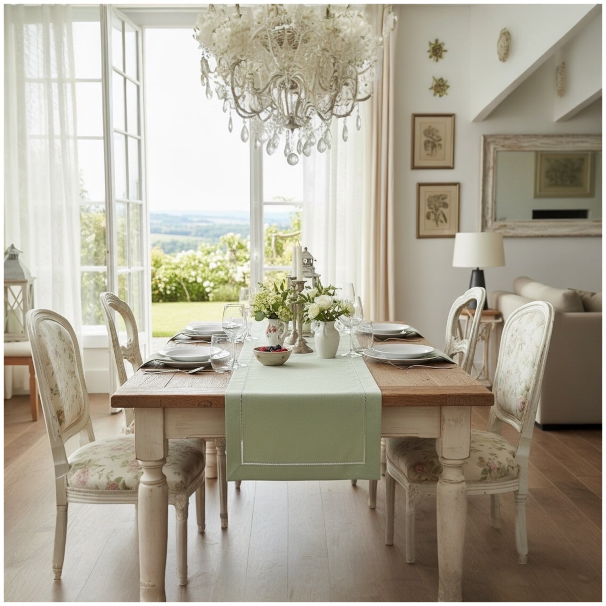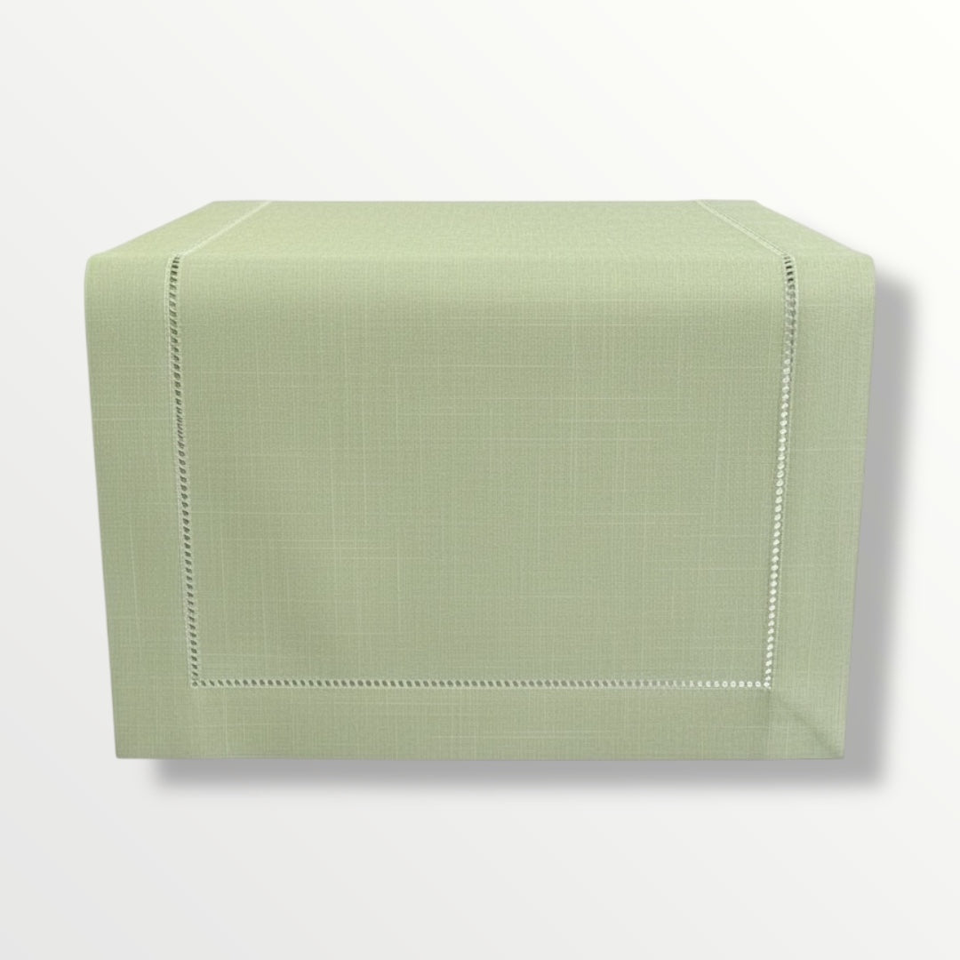 Add timeless charm to your dining table with this elegant linen-look table runner in a beautifully muted sage green. Designed for homes that appreciate clean lines and understated luxury, this runner enhances any setting — from modern apartments to classic dining rooms.