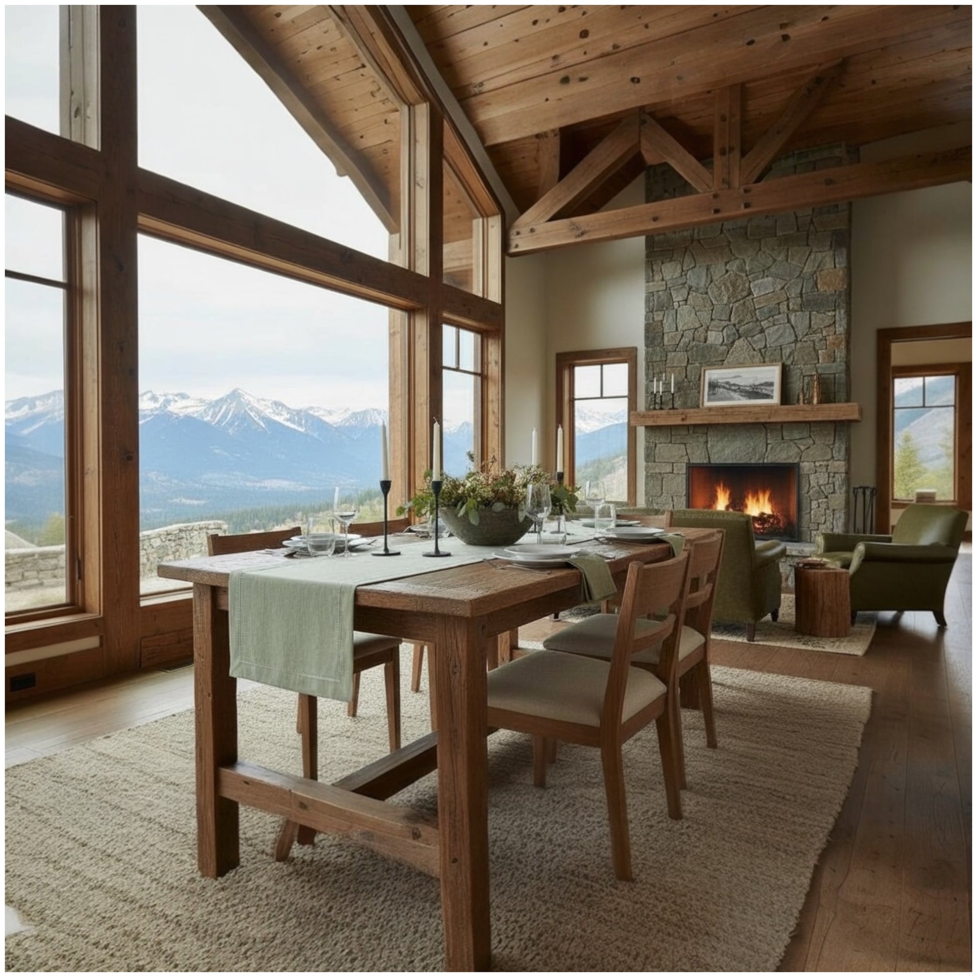 Farmhouse: Rustic wood, cream crockery, soft candlelight