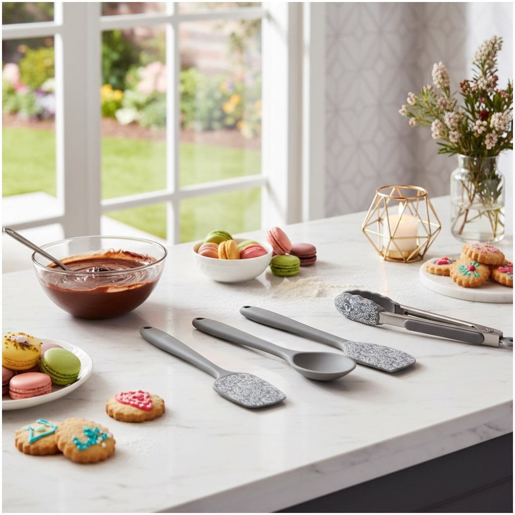 Each piece is designed for comfort and control, featuring a smooth, ergonomic grip that feels secure in hand, even when working with hot cookware. The silicone heads are gentle on non-stick surfaces, helping protect your pots and pans while ensuring efficient mixing, stirring, scraping, and serving.