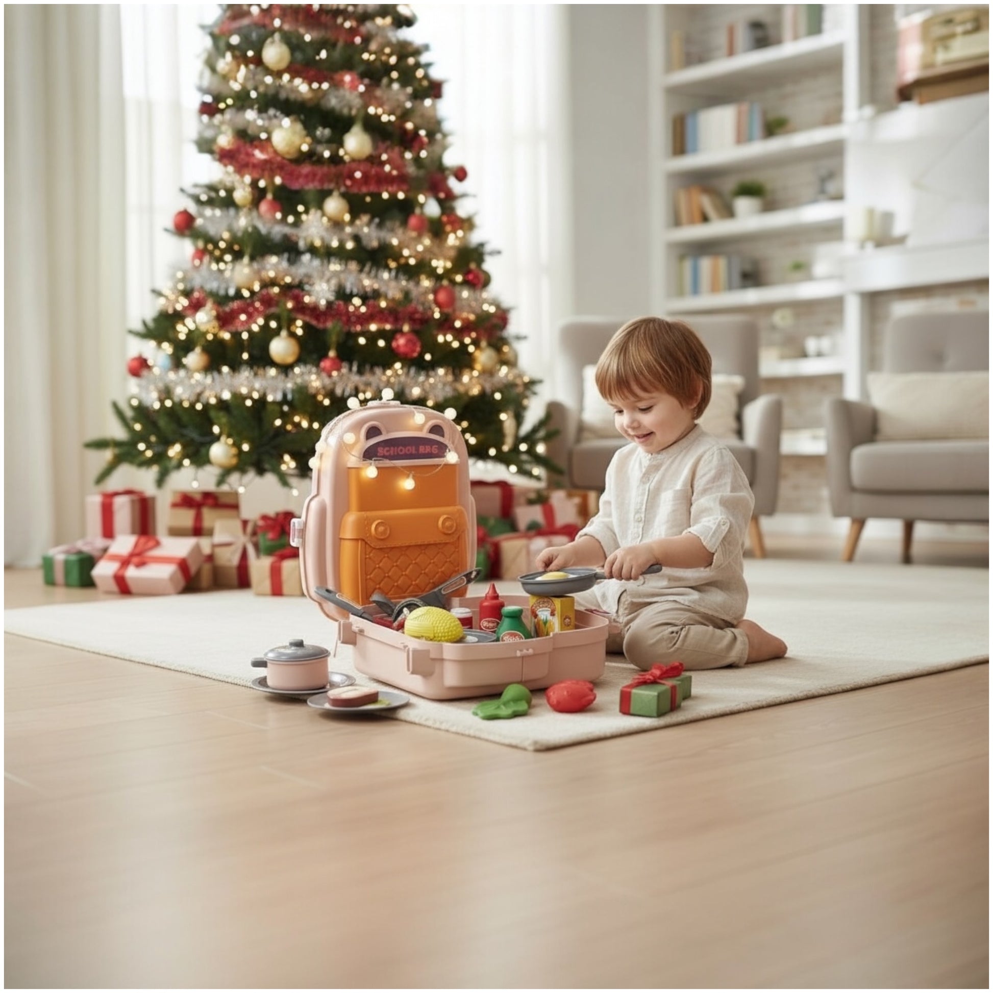 The set folds neatly into a lightweight backpack, making it easy for little chefs to carry their mini kitchen anywhere. Designed for kids aged 3 and up, it promotes hands-on learning, social play, and early motor skills development.