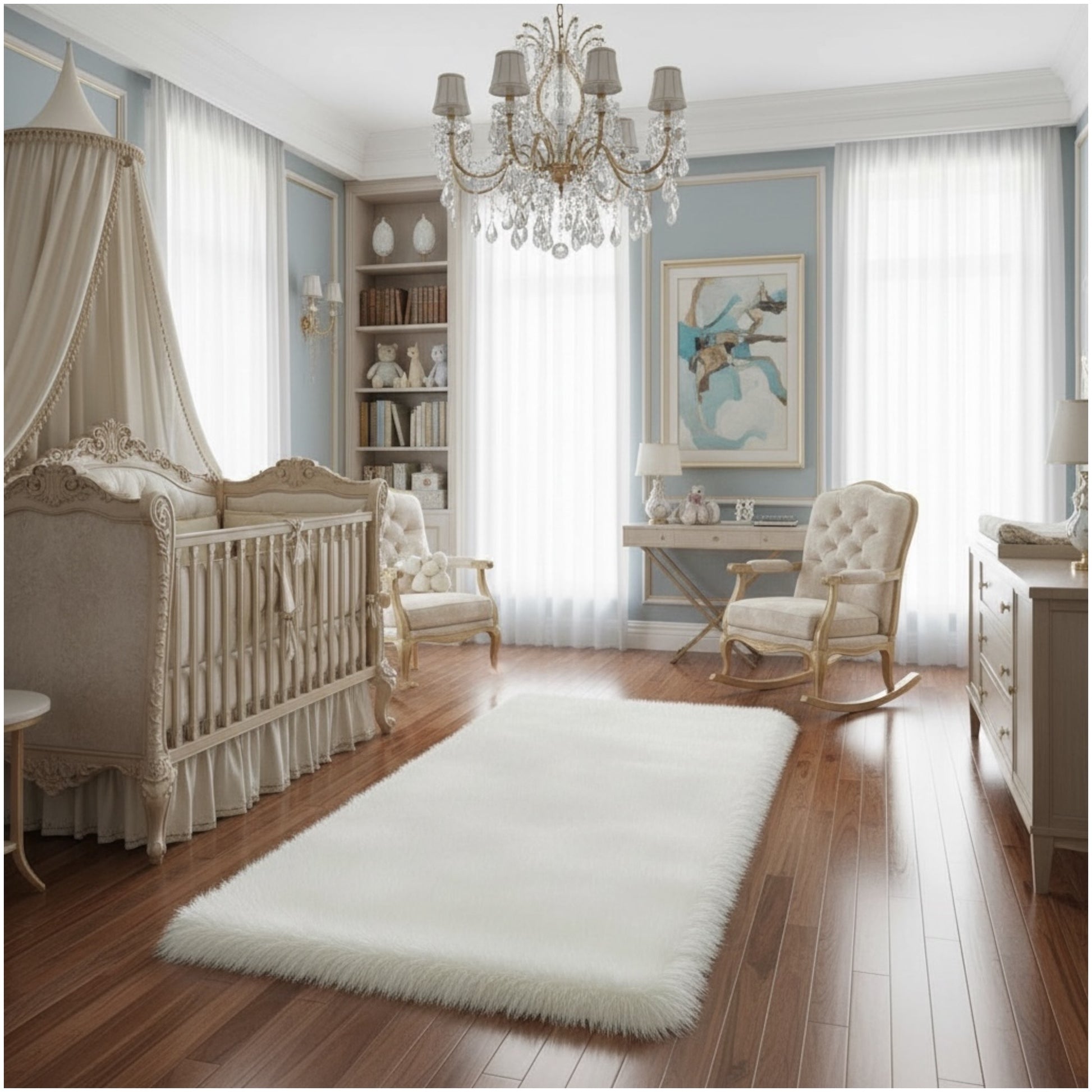 A fluffy rug that brightens and softens your space, perfect for glam décor, nurseries and cosy corners