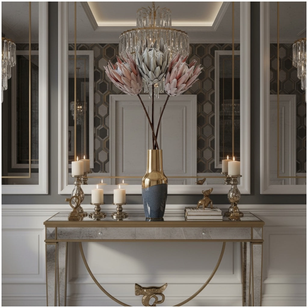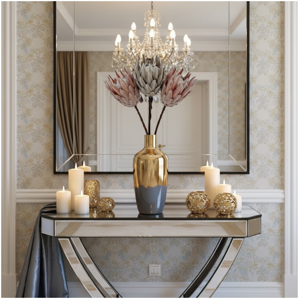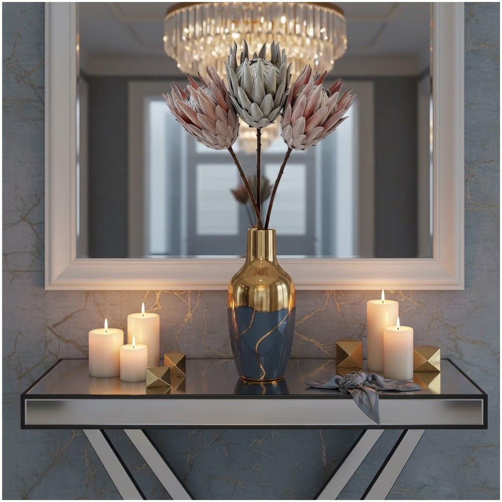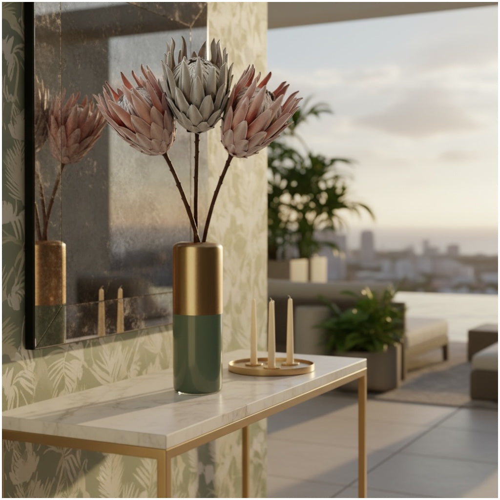 Designed as statement pieces, the flowers feature a sophisticated muted colour palette blending soft dusty pink and subtle grey tones. This combination allows for effortless styling across modern, luxe, and contemporary interiors. Whether arranged in a tall vase, styled on a console, or incorporated into an event display, these proteas instantly elevate a space.