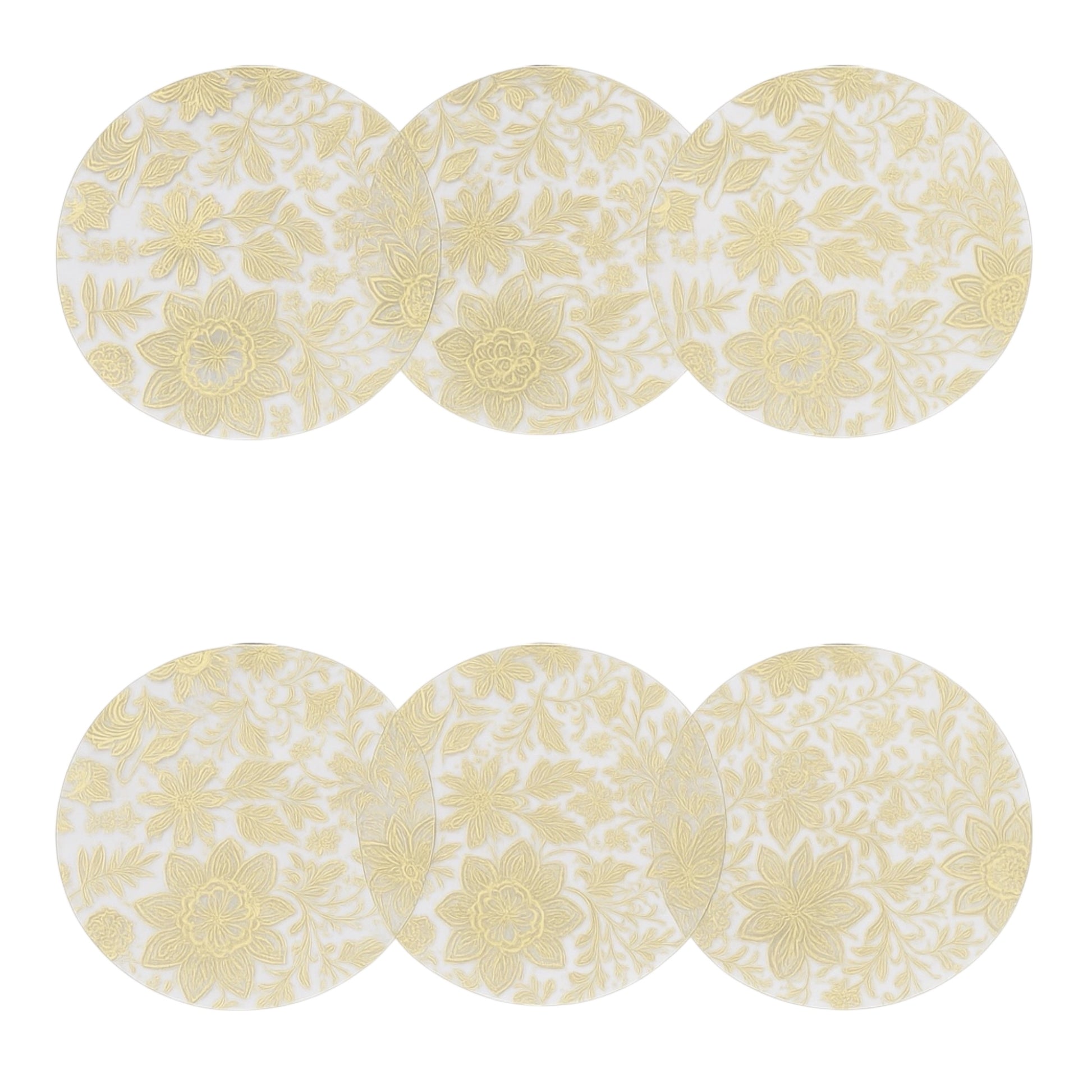 Luxury Metallic Gold-Etched Translucent Round Placemats - Set Of 6