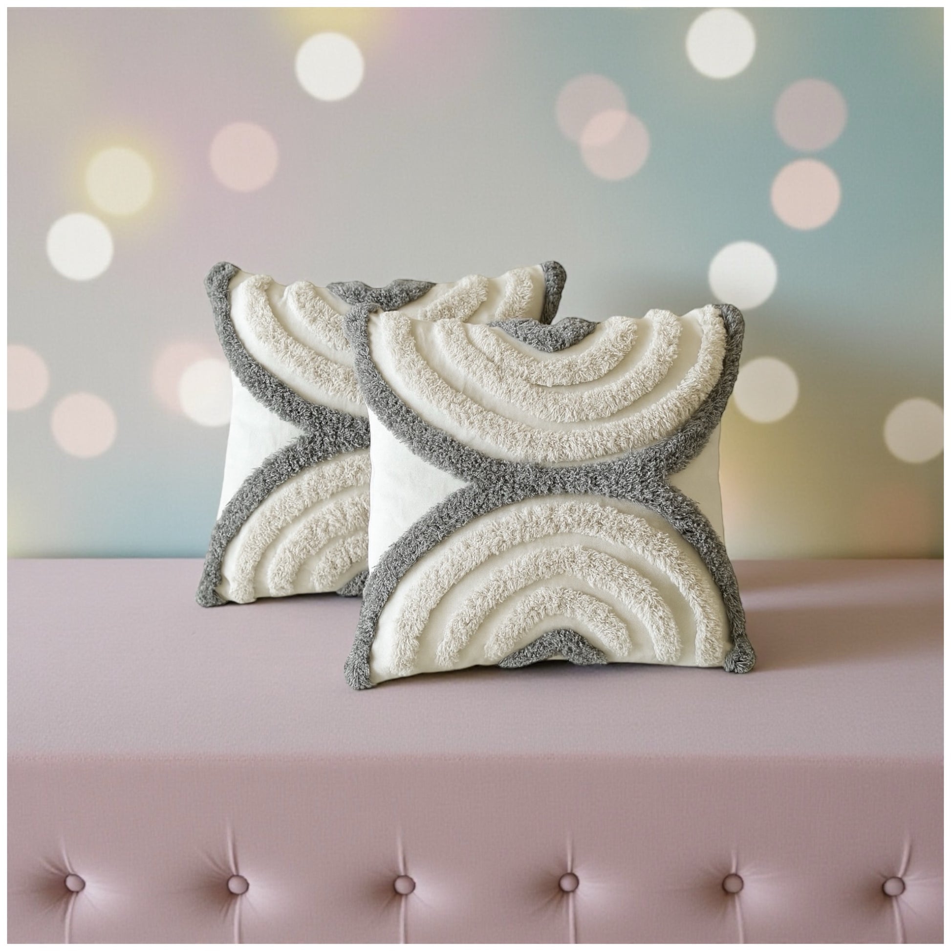 Elegant grey and cream tufted design adds texture and visual interest