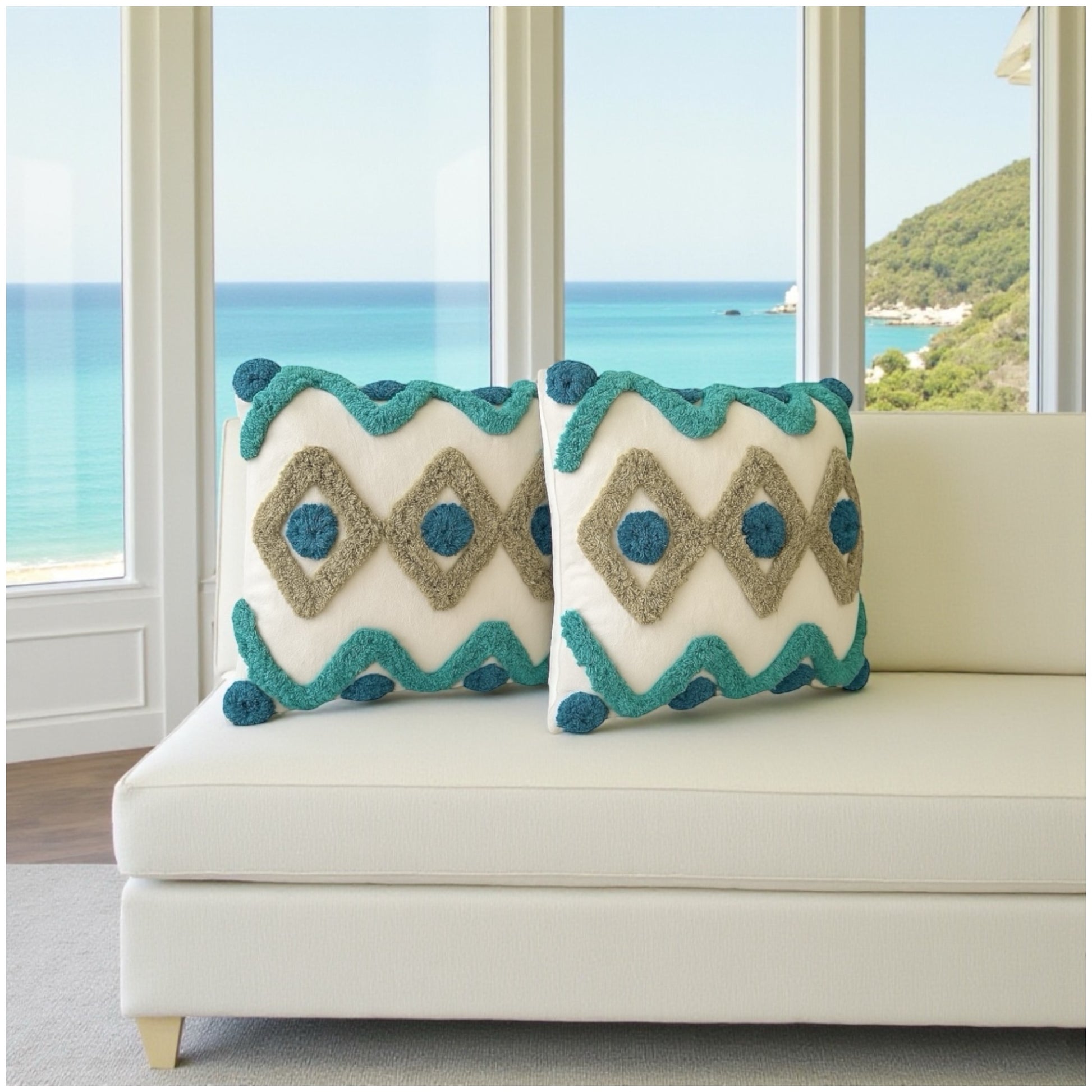 Their balanced teal, aqua and natural beige tones work seamlessly in any interior — modern, minimal, boho, colourful or neutral. They’re soft enough for comfort, stylish enough to elevate your whole room, and versatile enough to fit in wherever you place them.