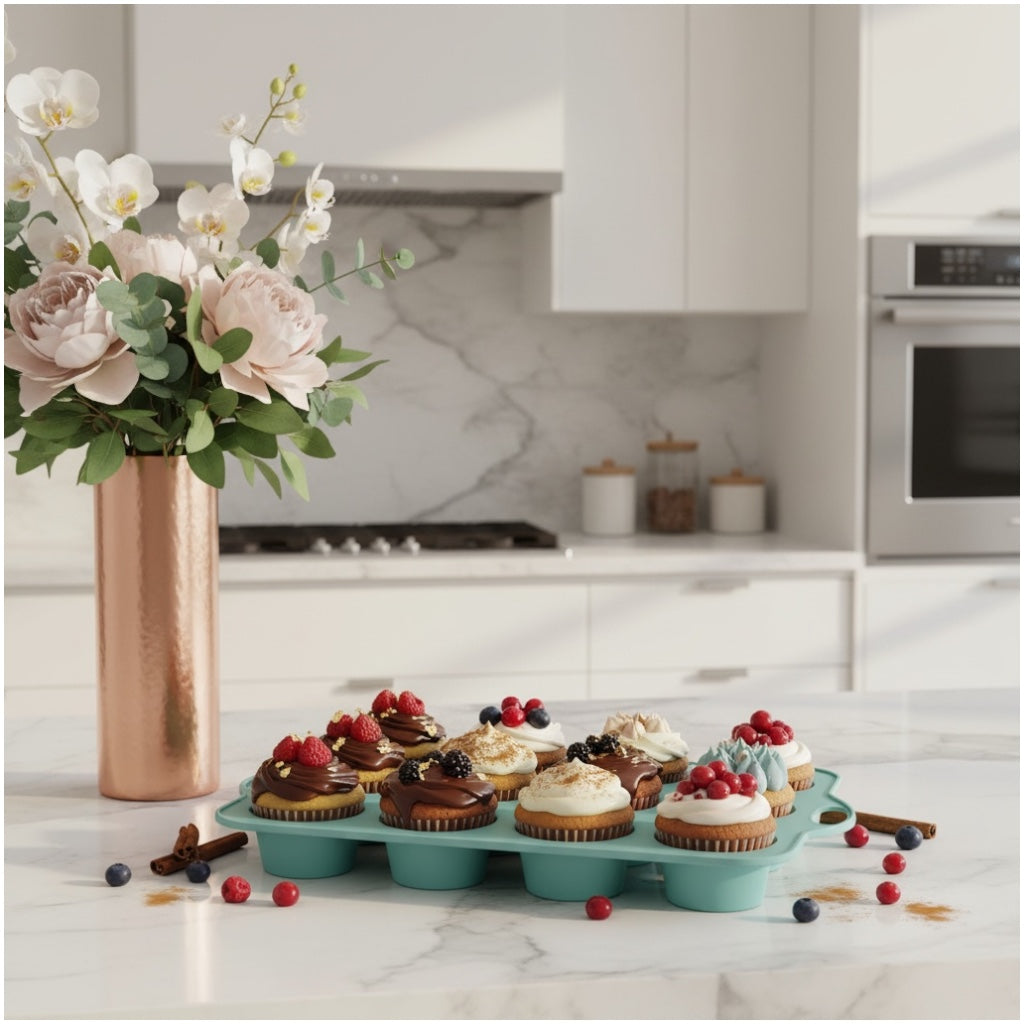 Its teal colour adds a modern, cheerful touch to your kitchen, while the sturdy yet flexible design makes it easy to handle, store, and clean. Suitable for both oven and freezer use, this mold is perfect for cupcakes, muffins, mini desserts, frozen treats, and more.