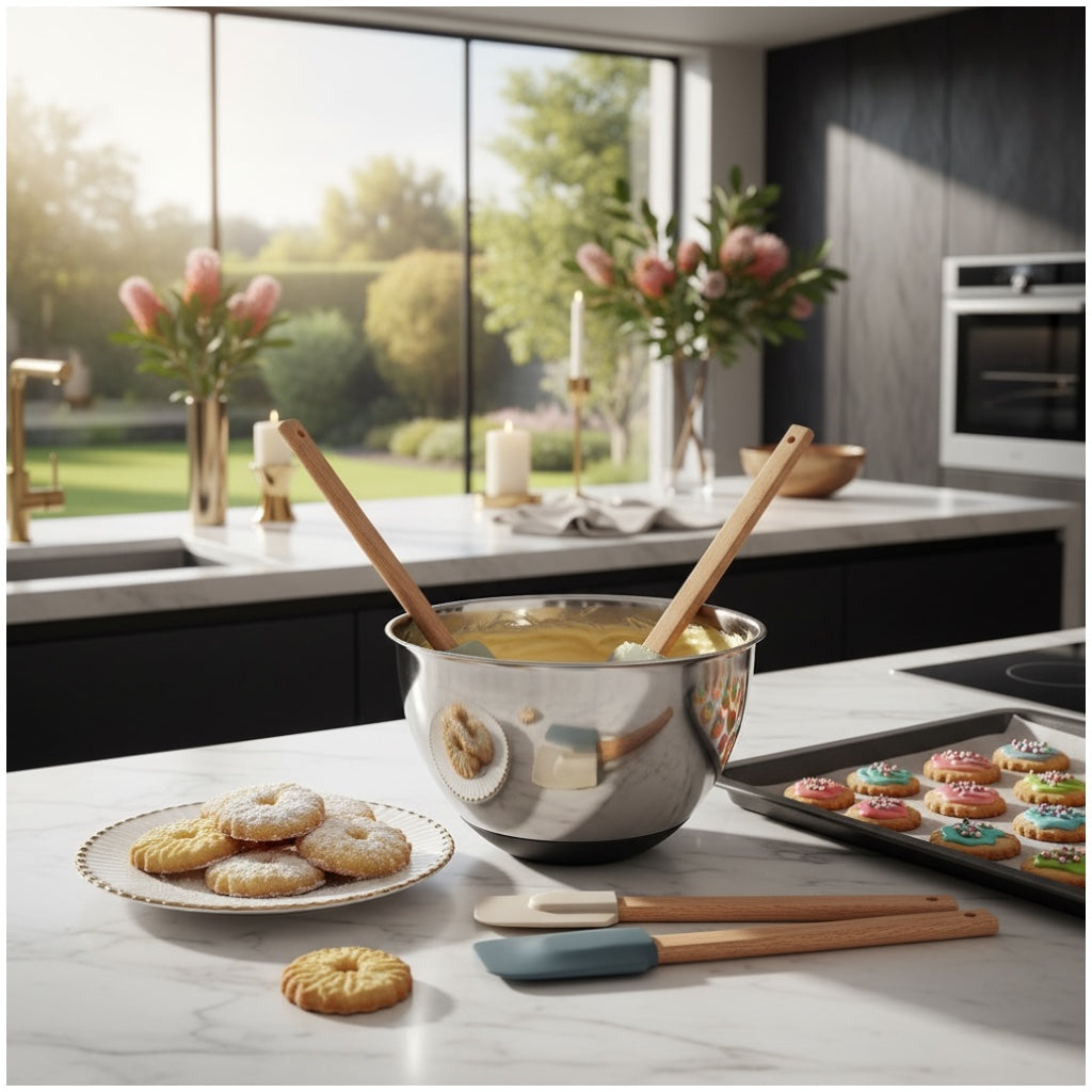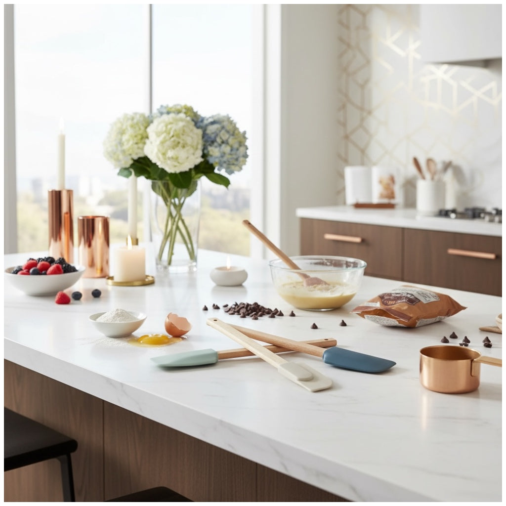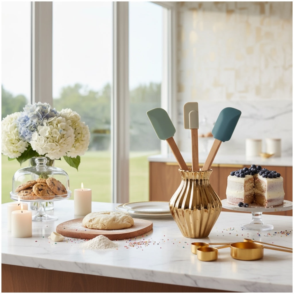 The soft silicone heads are gentle on non-stick cookware, preventing scratches while ensuring thorough mixing and scraping. Heat resistant and dishwasher safe, these utensils are built for daily use in modern kitchens.