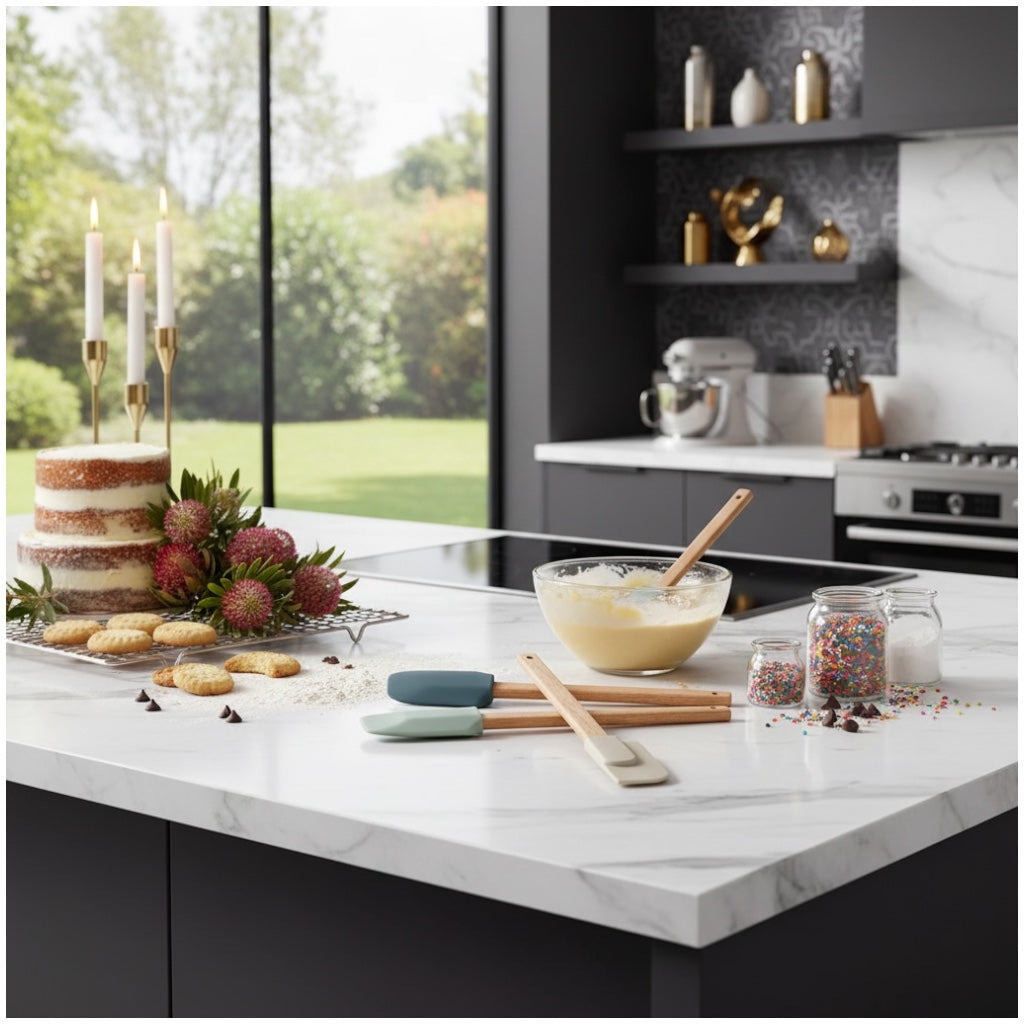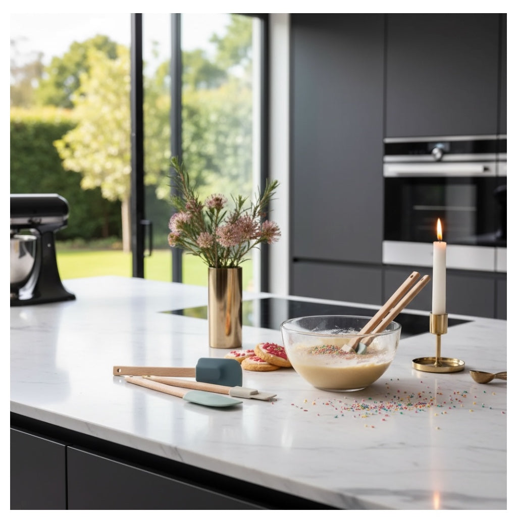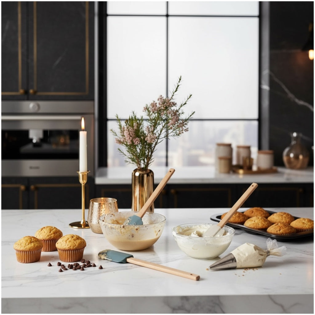 Crafted from high-quality food-safe silicone and natural beech wood handles, this set allows you to scoop, scrape, stir, fold, and smooth ingredients with precision. Whether you're mixing cake batter, spreading frosting, scraping bowls clean, or stirring sauces, these tools deliver flexibility without compromising durability.