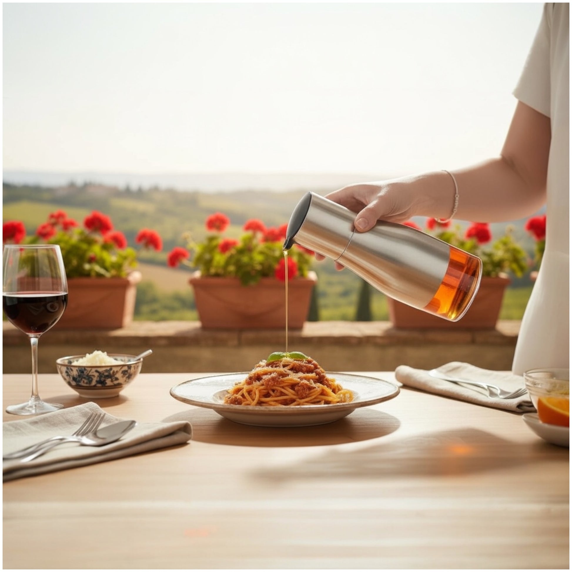 Durable, elegant, and easy to use — a stylish oil dispenser for cooking and table serving
